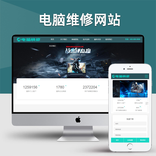 (自適應(yīng)手機(jī)版)響應(yīng)式電腦修理公司pbootcms網(wǎng)站模板-藍(lán)色HTML5電腦修理維修店網(wǎng)站源碼下載