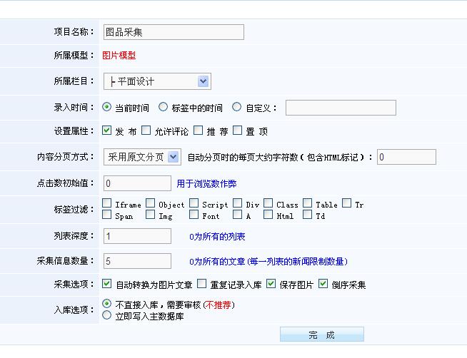 三、以上設(shè)置好后點(diǎn)擊完畢,然后就可以進(jìn)行采集了