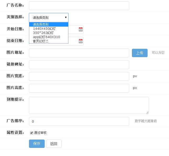 找到【擴(kuò)展】,選擇【廣告管理】,點(diǎn)擊【添加圖片廣告】。首先填寫(xiě)【廣告名稱(chēng)】,其次選擇好【類(lèi)別選擇】,之后上傳【圖片地址】,填寫(xiě)好【鏈接網(wǎng)址】,定義好【圖片寬度】、【圖片高度】,最后點(diǎn)【保存】就可以